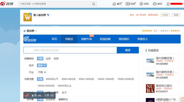 如果你经常刷微博,连工作都想在微博里面找,那就关注微人脉招聘吧。它是新浪微博最大的商务和职场人士的社交网络,给自己贴上标签,细细诉说着自己的工作经历。
