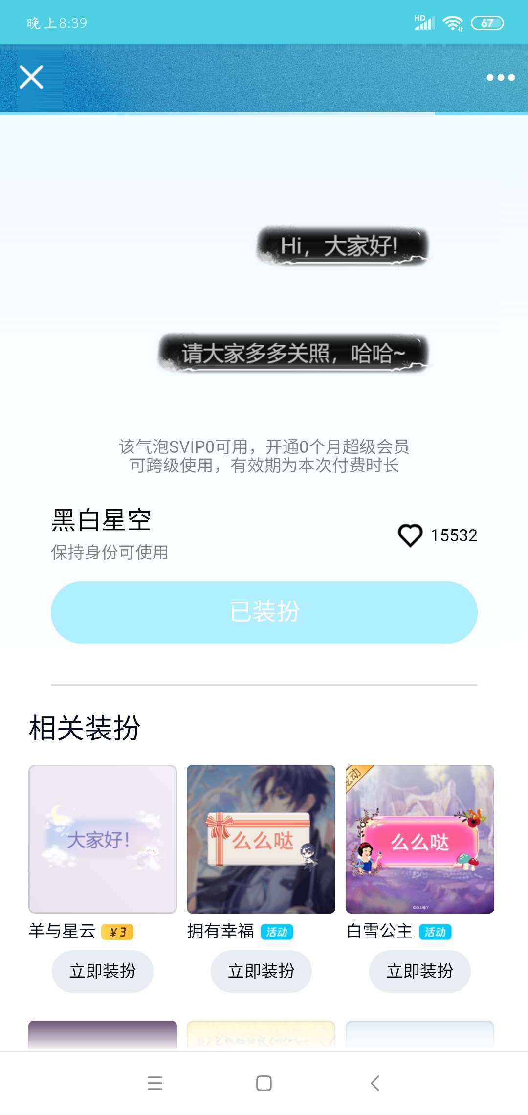 QQ免费设置黑白星空会员气泡
