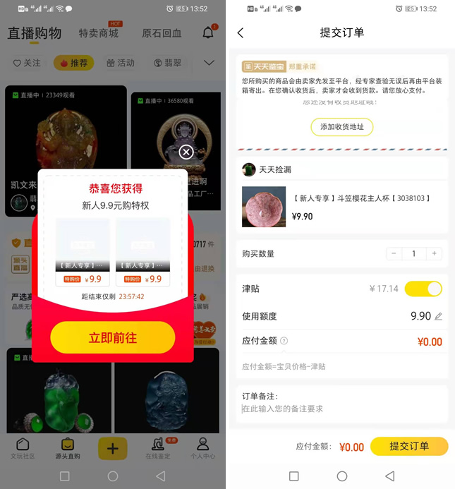 天天鉴宝0元薅实物包邮教程