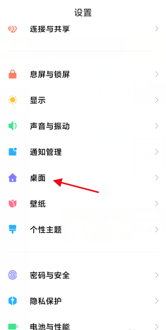 打开小米手机,点击进入设置界面,如图,选择【桌面】