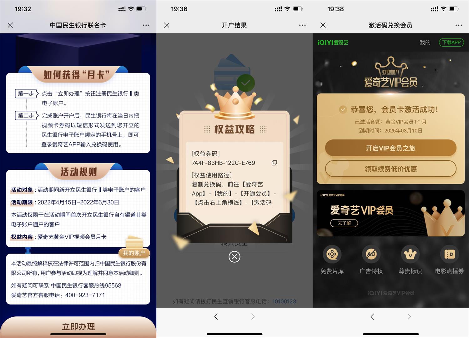 1、打开活动地址->填写信息綁卡开通->领取复制爱奇艺会员兑换码