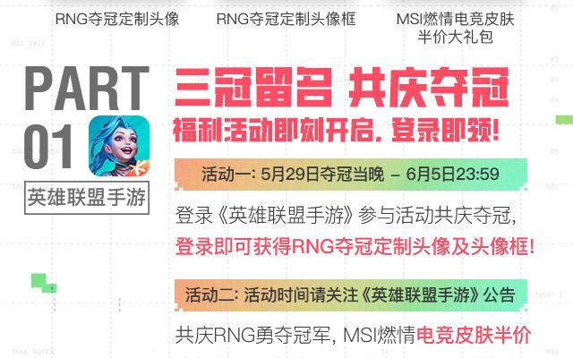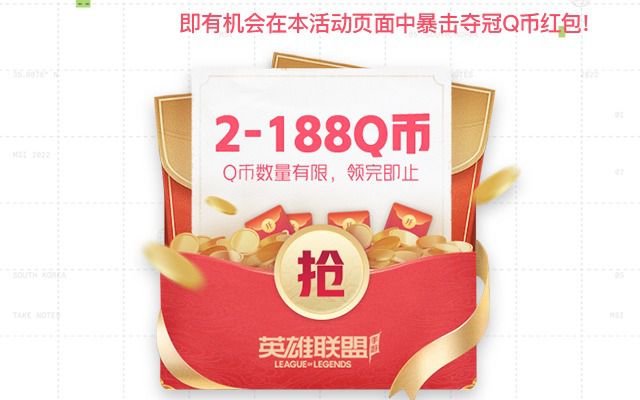 LOL手游恭喜RNG夺冠分享领2-188QB,登录下游戏就可以去领了,没有客户端的使用先锋APP秒登录下就可以了。
