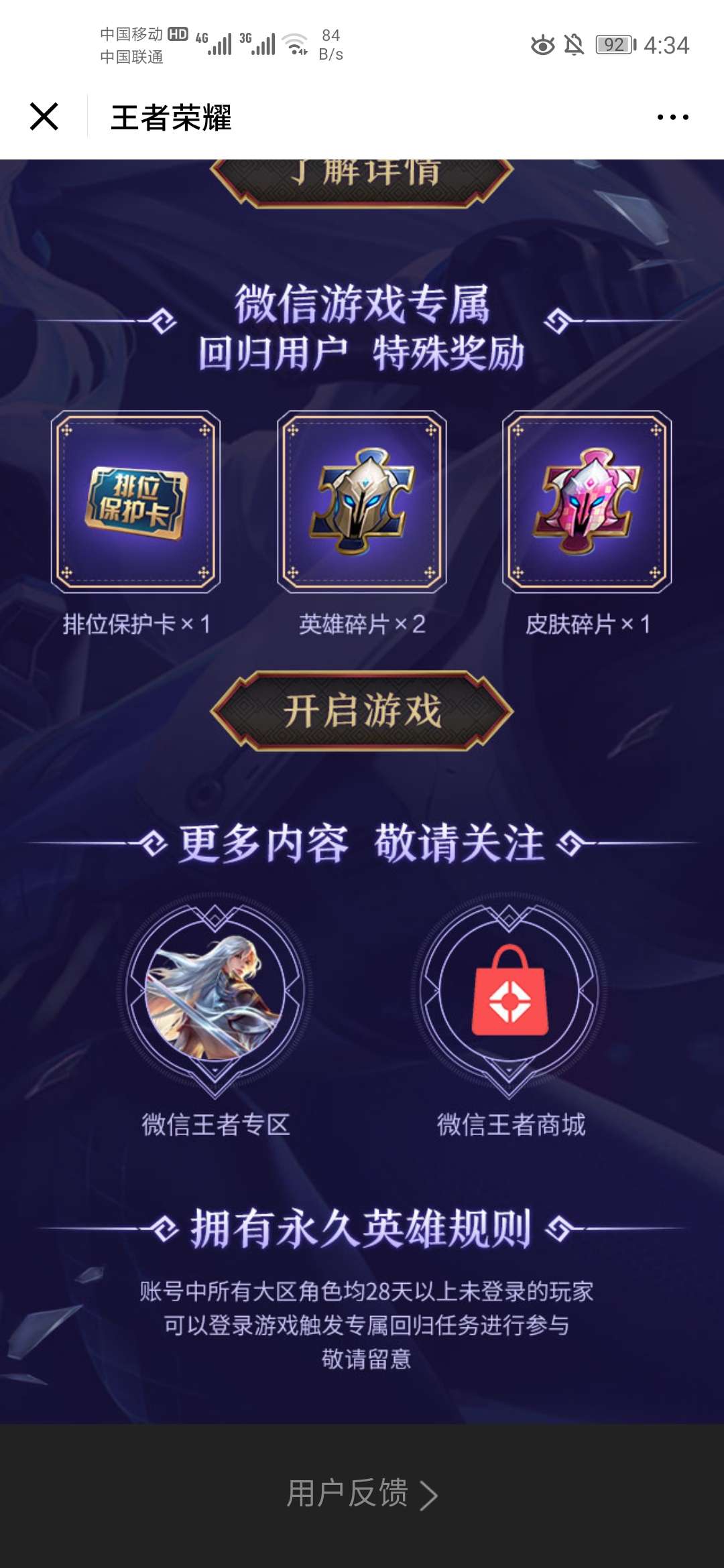 王者荣耀回归用户领3个永久英雄