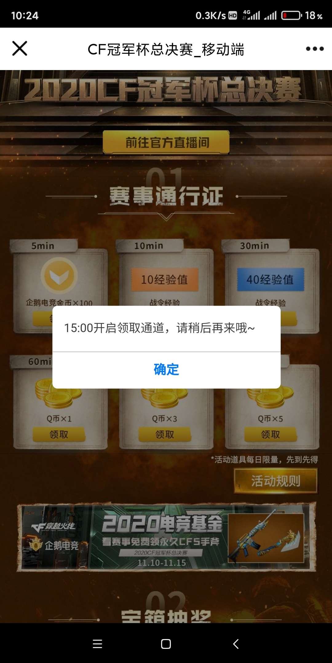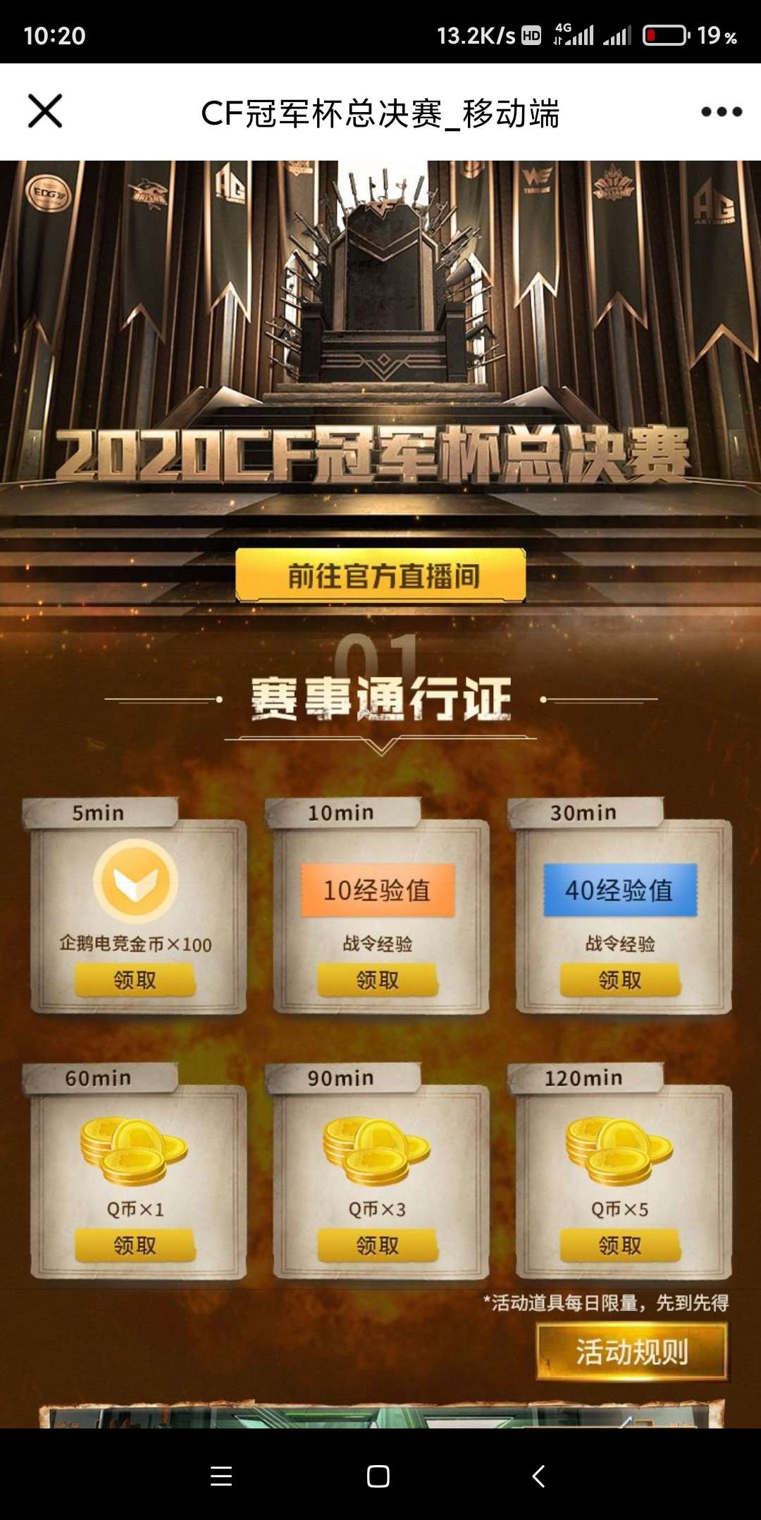 企鹅电竞CF端游观赛领Q币