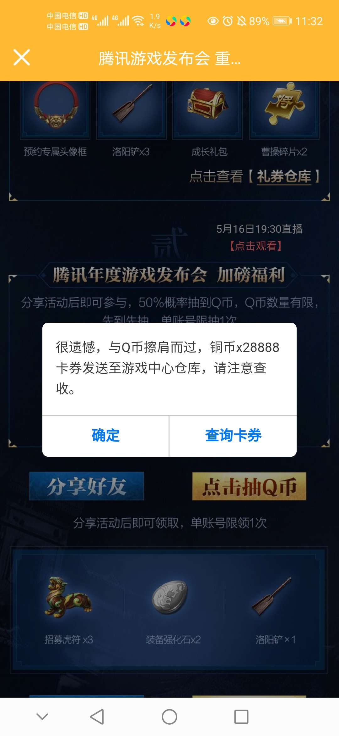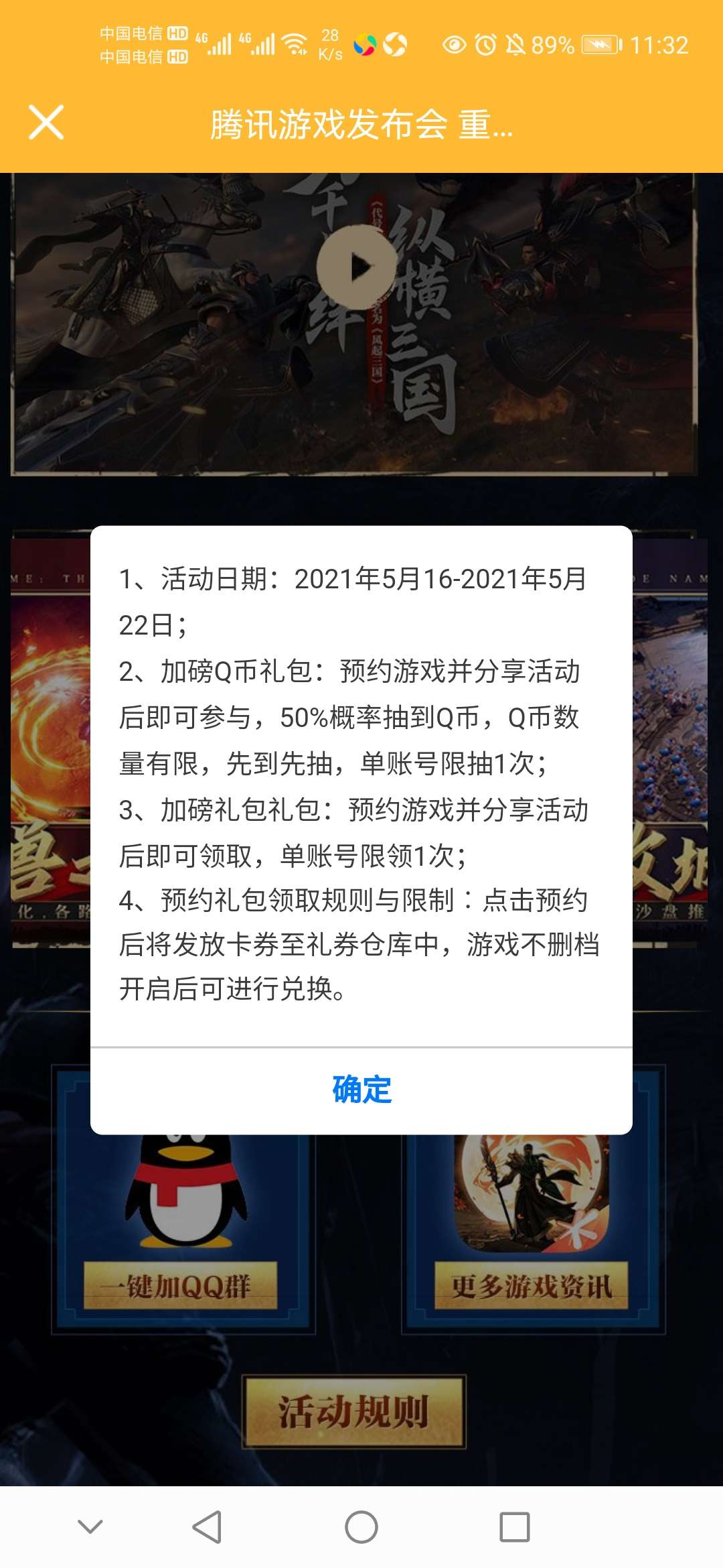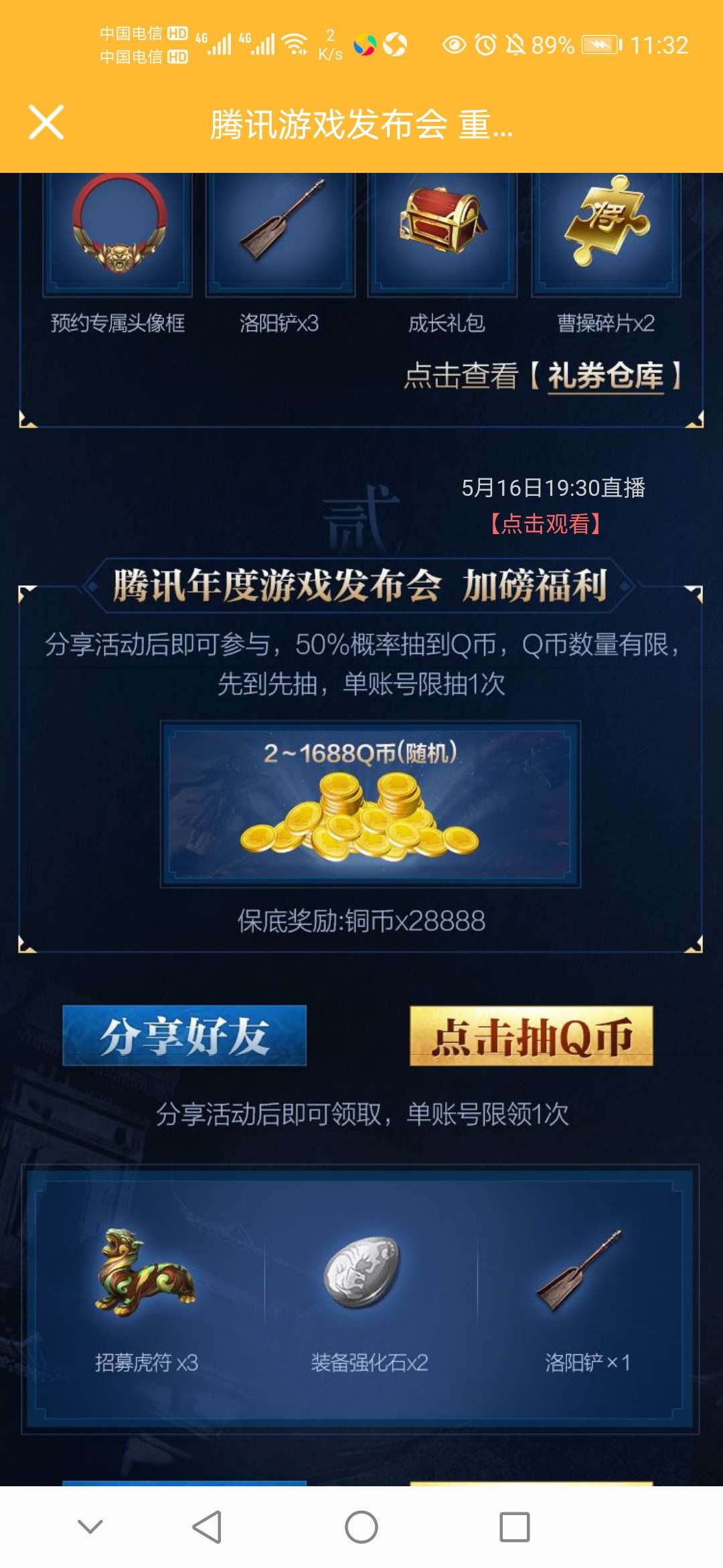 【活动规则】预约游戏并分享活动后即可参与,50%概率抽到Q币,Q币数量有限,先到先抽