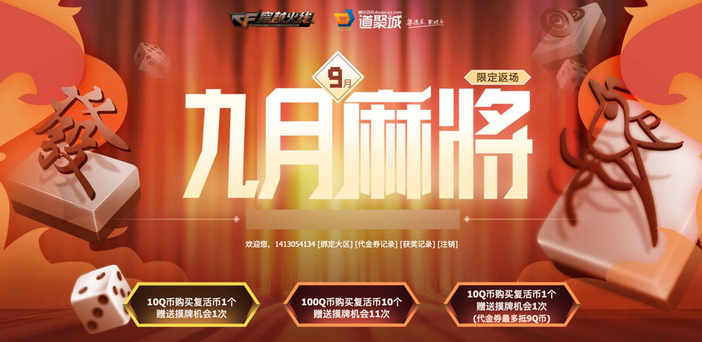 CF9月麻将限时返场活动来了,这次奖励有觉醒版王者之决、黑骑士耀金、火麒麟轻羽等。