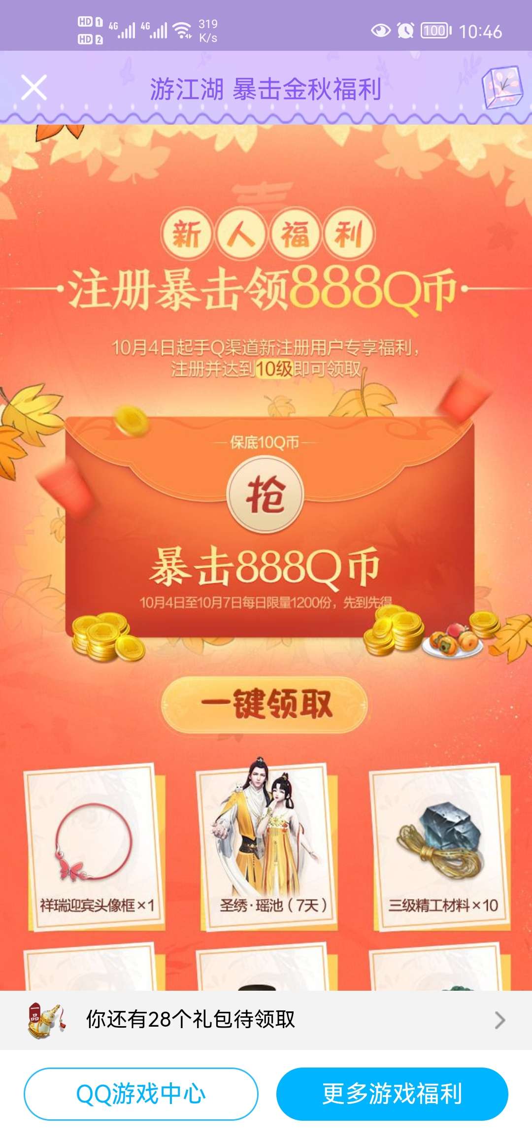 【活动规则】用户首次在手Q下载注册的换区注册即可以领取,安卓用户有些不行,苹果用户直接换区就行。有些需要蹲点领。