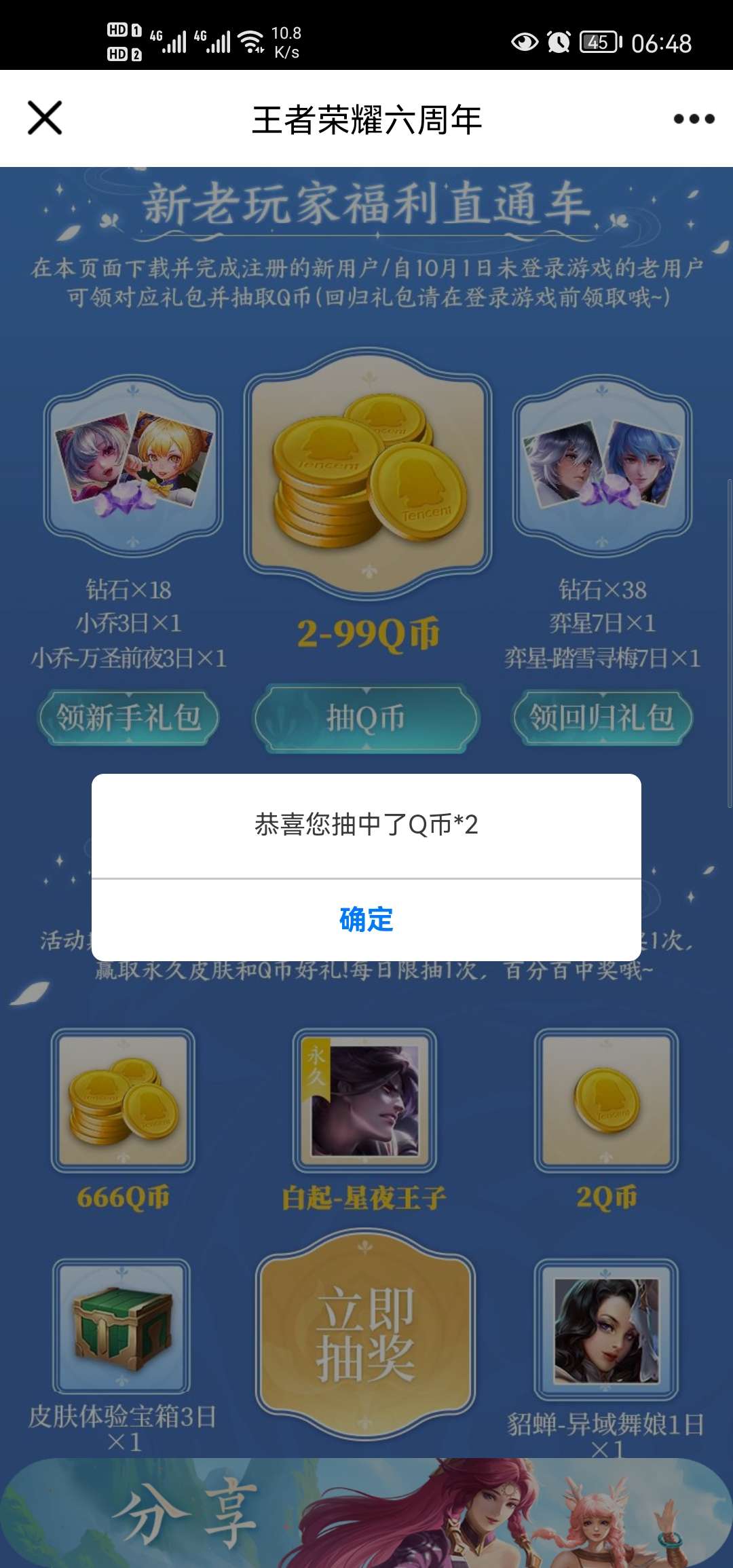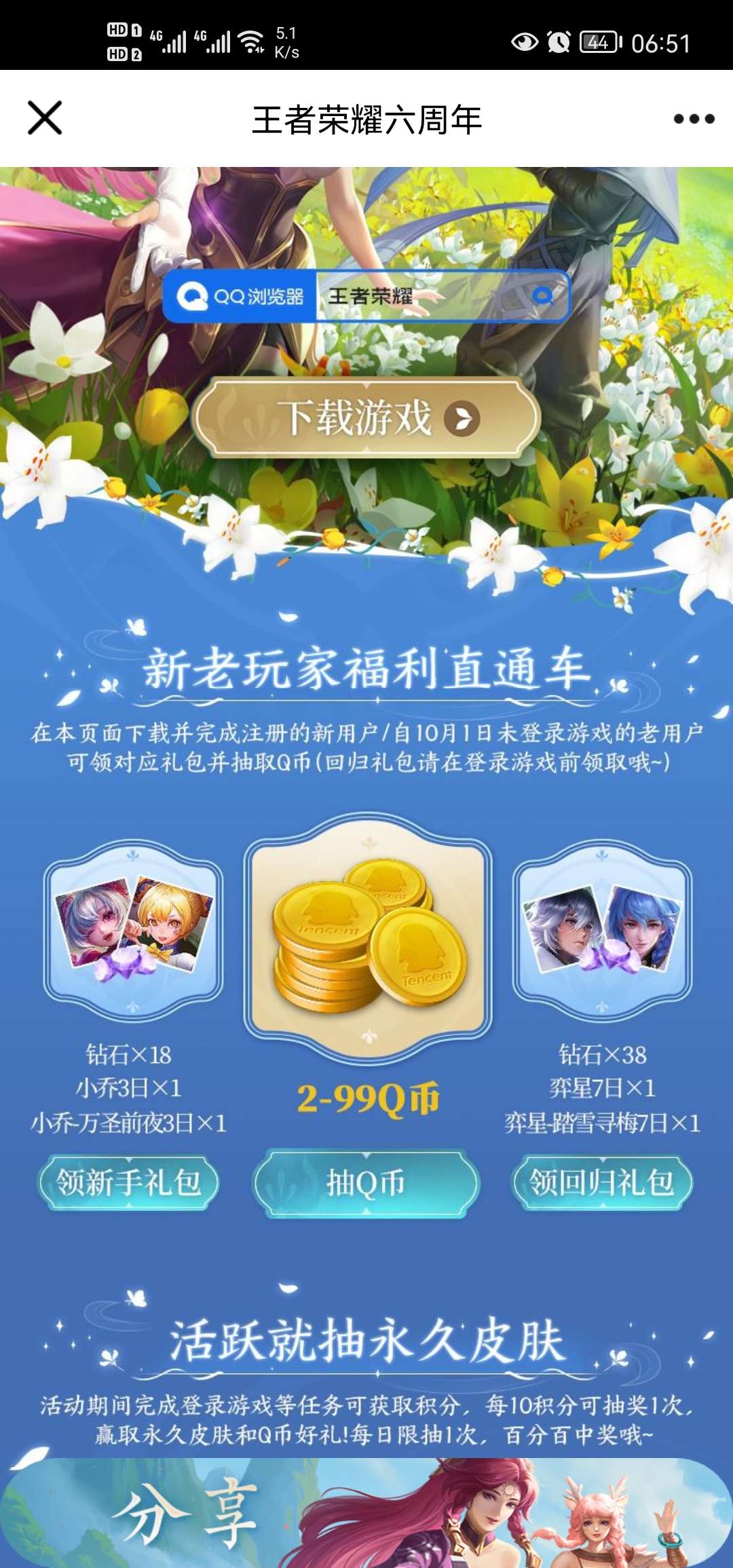 【活动介绍】王者荣耀回归用户领取2-99Q币