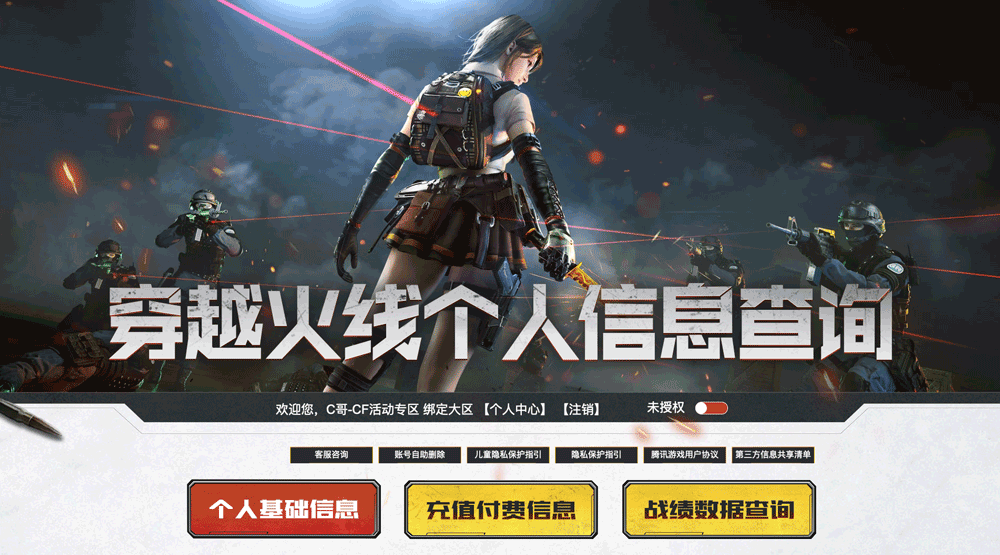 CF个人信息查询页面上线了,可以查自己个人基础信息、充值付费信息、战绩数据查询等。