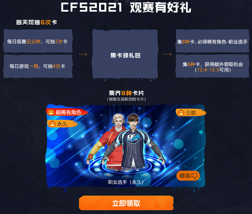 CF2021万圣节系列全新限定活动,集卡可以免费领职业选手角色,还有AK47万圣节2021、麻雀、毁灭黑大圣等武器。