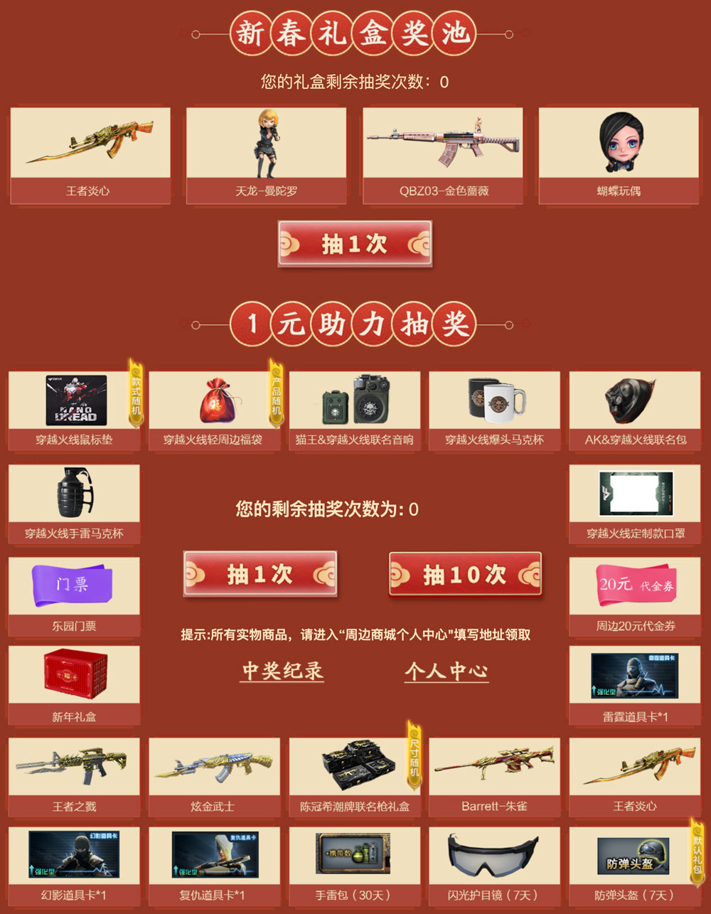 CF火线实验室第六期活动,这次是众筹“穿越中国节-限量新春礼盒”,众筹后可抽永久王者炎心、天龙曼陀罗等。