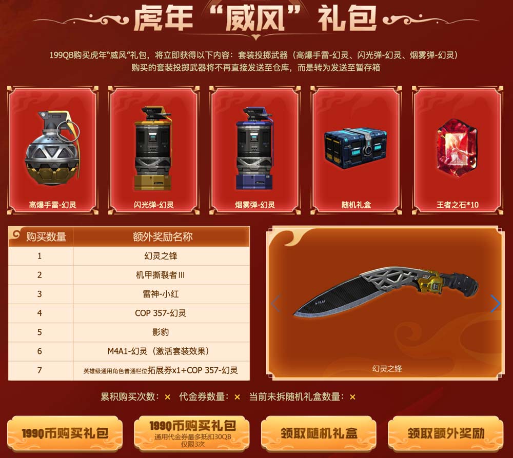 CF虎年新春礼包 购买7套领幻灵武器套装