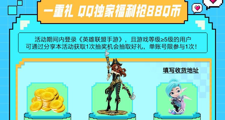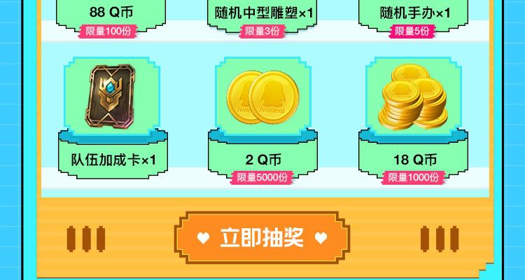 LOL手游电玩派对抽QB,登录后分享抽2-88QB,游戏等级大于5级以上才可以参与。