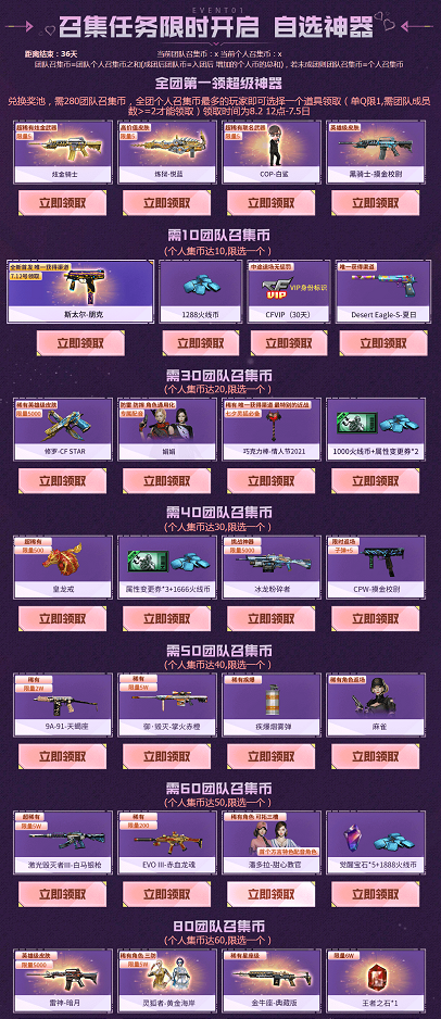 CF7月超级神器加码2022活动来了,召回队友给召集币,可兑永久黑骑士-摸金校尉皮肤、斯泰尔-朋克、修罗-CF Star皮肤、娟娟、巧克力棒-情人节2021(七夕灵狐的官方搭配)、冰龙粉碎者、麻雀、激光毁灭者Ⅲ-白马银枪、潘多拉-甜心教官、灵狐者-黄金海岸等