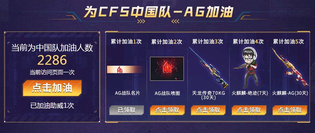 CF2022世锦赛 加油领永久AG战队名片喷图等武器,就是点一下加油就可以了,有需要别错过。