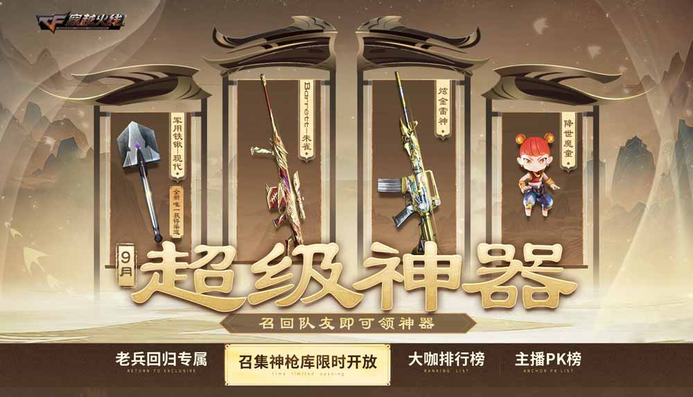 CF9月超级神器加码2022,邀好友得召集币,使用召集币兑换雷神-机甲刑天皮肤、军用铁锹-现代、CFVIP(30天)、闪光弹-京剧·黄、蜀雪、CPW-动力-灵狐、巨蟹座背包、火麒麟-百城皮肤、王者之石等
