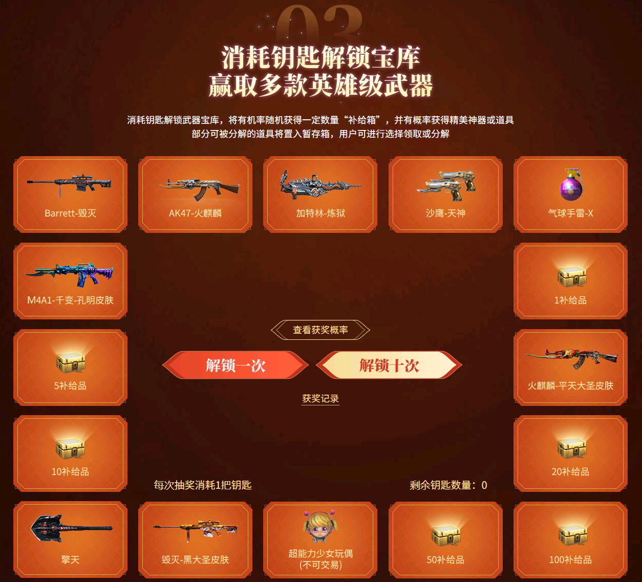 CF金秋福利汇英雄级夺宝活动,抽Barrett毁灭 加特林炼狱 AK47等武器,有兴趣的可以去参与下。