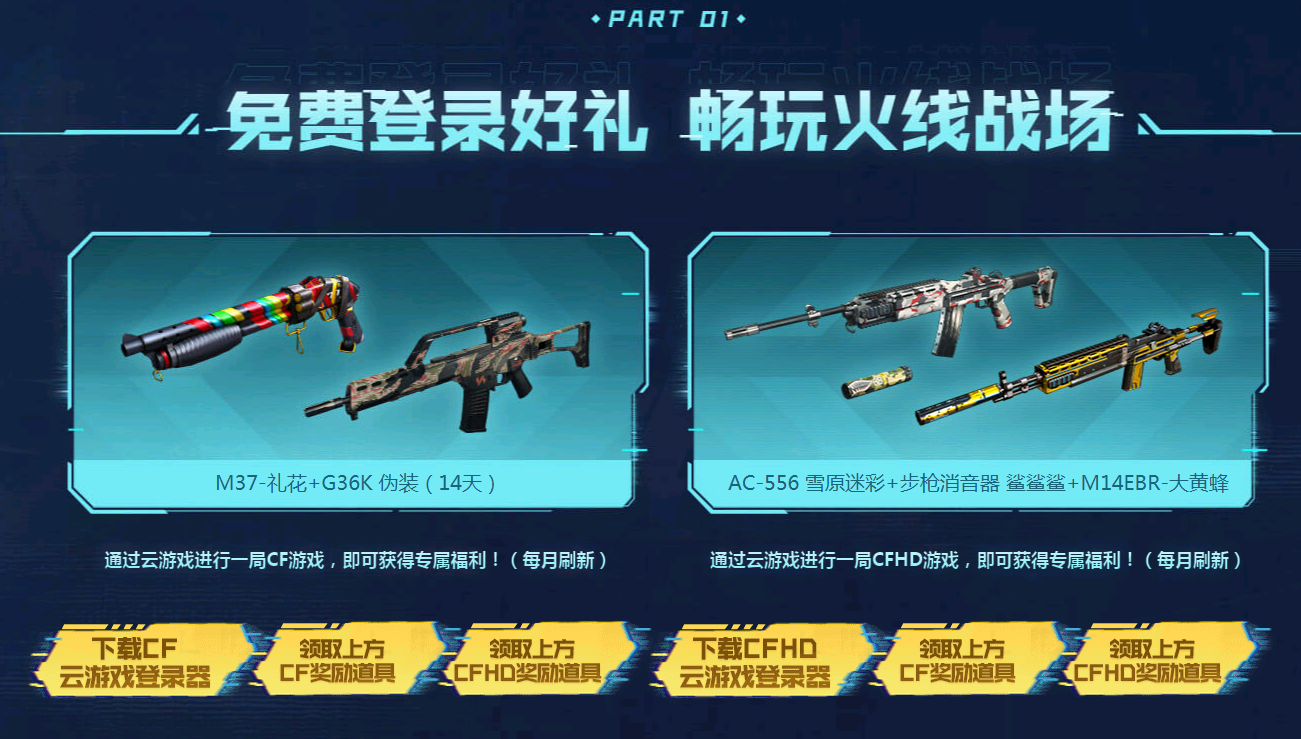 CF&CFHD云游戏福利 免费领M37礼花 G36K伪装等,奖励还是不错的,有兴趣的可以去参与下。