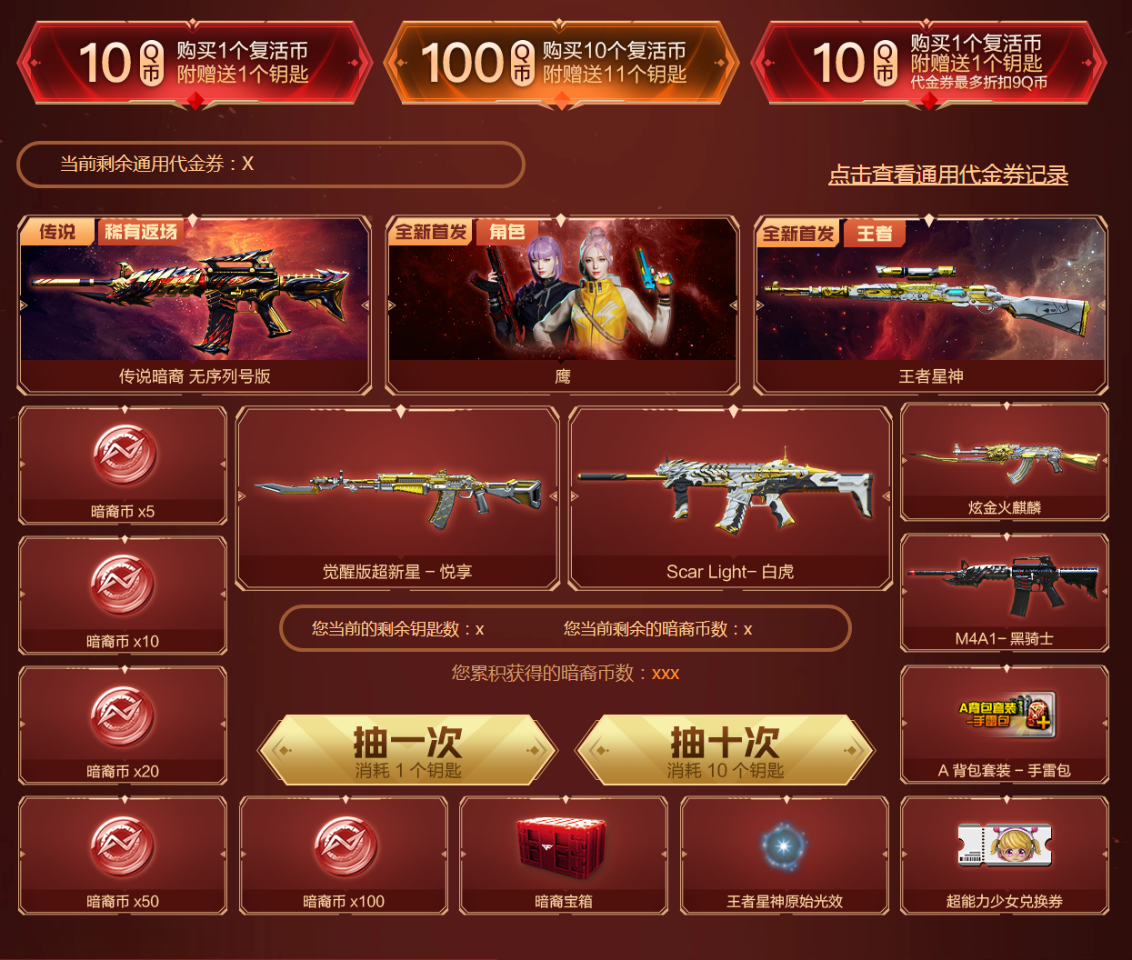 CF传说序列号定制 抽传说暗裔无序列号版 鹰 王者星神等,有兴趣的可以去参与下。
